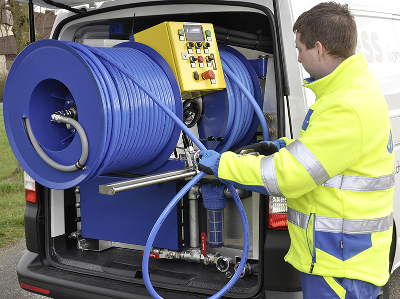 Unser Kleinspülfahrzeug ist mit einem mechanischem Bohrgerät, Hochdruck-Spülaggregat und TV-Kleinkamera ausgerüstet.